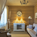 Размеры влияют на визуальное восприятие. Широкие детали формируют ощущение простора, тогда как узкие привносят в помещение уют. Влажность бруса должна быть не больше 15%, иначе он деформируется после закрепления, что спровоцирует возникновение щелей. При покупке необходимо контролировать уровень влаги с использованием специального устройства. Стоит удостовериться, что планки имеют правильную геометрию, чтобы монтаж прошел без осложнений. Перед сборкой доски рекомендуется обработать антисептическими и огнезащитными средствами для предотвращения гниения, поражения грибком, насекомыми и возгорания.